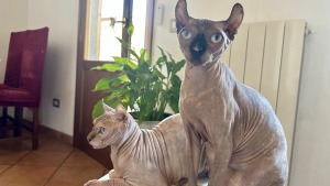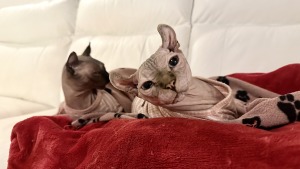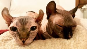 はるこんが一緒に暮らしている、エルフキャットのE.T.ちゃん(姉)とグレムリンちゃん(妹)は、2歳違いなんだけど、性格が真逆😅