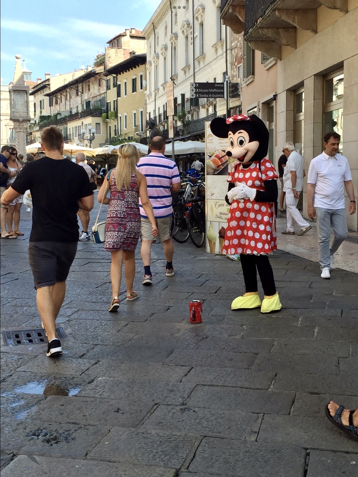 この写真は、はるこんがイタリアのヴェローナに行った時に撮ったんだけど、観光地にはこうやってコスプレ(?)の人が、お金をねだってくるシーンも多いよ。