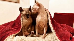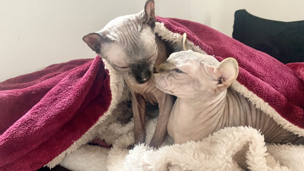 実際、はるこんは「エルフキャット」というスフィンクスと同じような毛のない猫ちゃん2匹(E.T.ちゃんとグレムリンちゃんの姉妹)と一緒に暮らしていて、他の猫ちゃんにはない「飼う時の注意点」があるなって感じているよ。